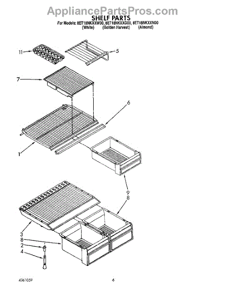 Parts for Whirlpool 8ET18NKXXG00: 05 - Shelf Parts