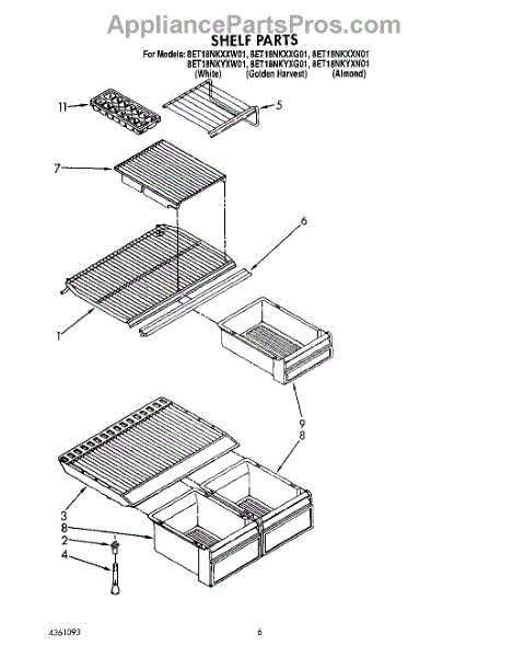 Parts for Whirlpool 8ET18NKXXG01: 05 - Shelf Parts