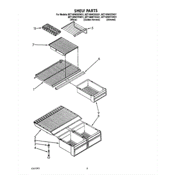 Parts for Whirlpool 8ET18NKYXN01: 05 - Shelf Parts
