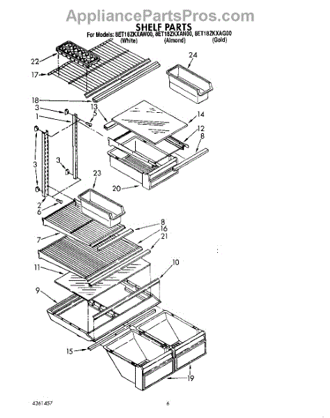 Parts for Whirlpool 8ET18ZKXAN00: 04 - Shelf Parts