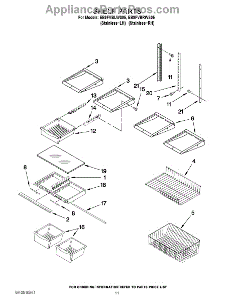 Note: For the right side drawer glide, use part number WP67001053