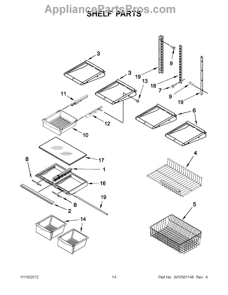 Note: For the right side drawer glide, use part number WP67001053