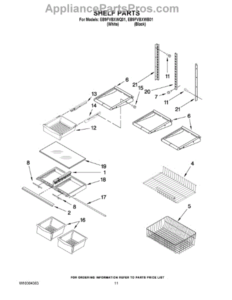 Note: For the right side drawer glide, use part number WP67001053
