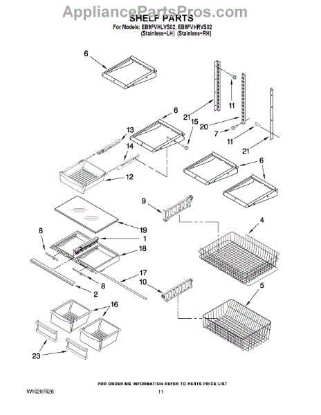 Note: For the right side drawer glide, use part number WP67001053