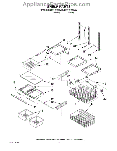 Note: For the right side drawer glide, use part number WP67001053