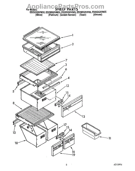 Parts for Whirlpool ED25DQXVW05: 04 - Shelf Parts