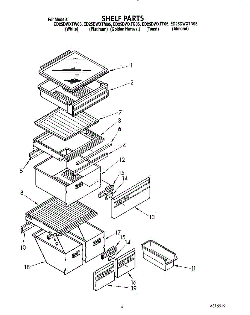 Parts for Whirlpool ED25DWXTG05: 04 - Shelf Parts
