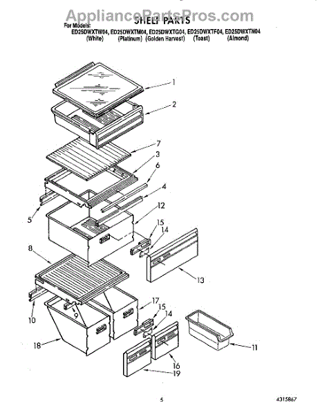 Parts for Whirlpool ED25DWXTN04: 04 - Shelf Parts