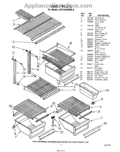 Parts for Whirlpool EHT161AKWR0: 07 - Shelf Parts