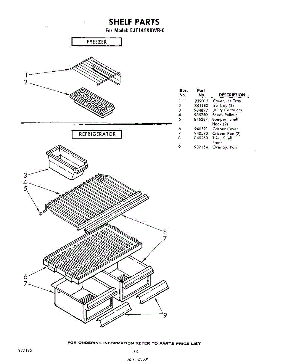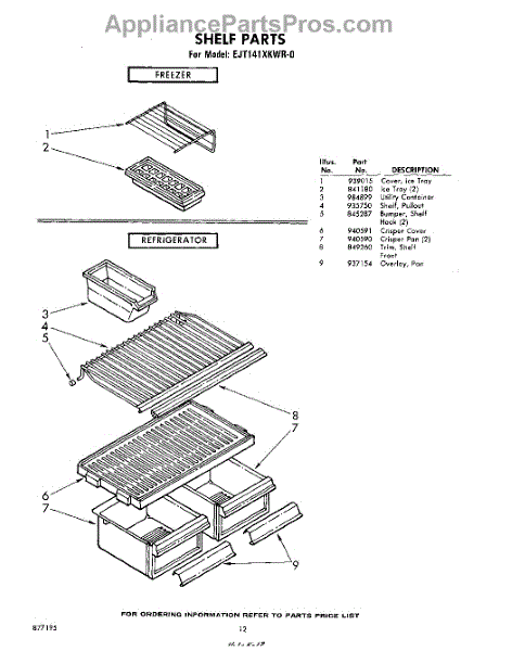 Parts for Whirlpool EJT141XKWR0: 12 - Shelf Parts
