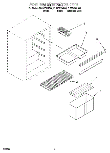 Parts for Whirlpool EL03CCXMQ00: 03 - Shelf Parts
