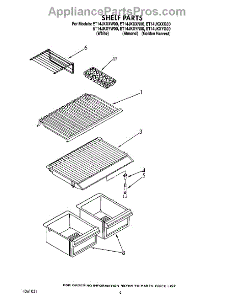 Parts for Whirlpool ET14JKYXN00: 05 - Shelf Parts