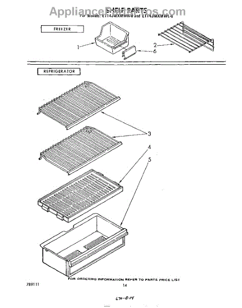 Parts for Whirlpool ET14JMXMWR0: 08 - Shelf Parts