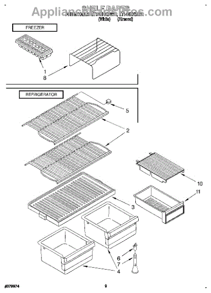 Parts for Whirlpool ET14NKXDW01: 05 - Shelf Parts