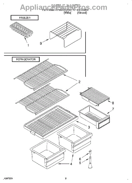 Parts for Whirlpool ET14NKXGW00: 05 - Shelf Parts