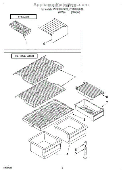 Parts for Whirlpool ET14NKXJN00: 05 - Shelf Parts
