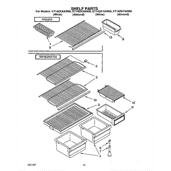 Parts for Whirlpool ET14ZKXAW00: 05 - Shelf Parts