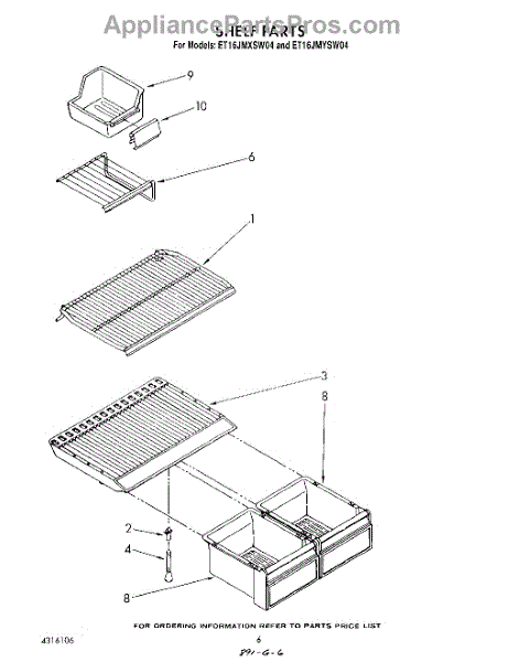 Parts for Whirlpool ET16JMXSW04: 05 - Shelf Parts