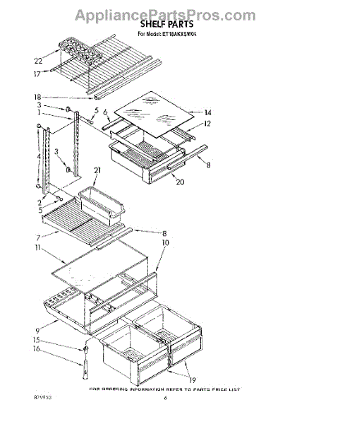 Parts for Whirlpool ET18AKXSW04: 05 - Shelf Parts