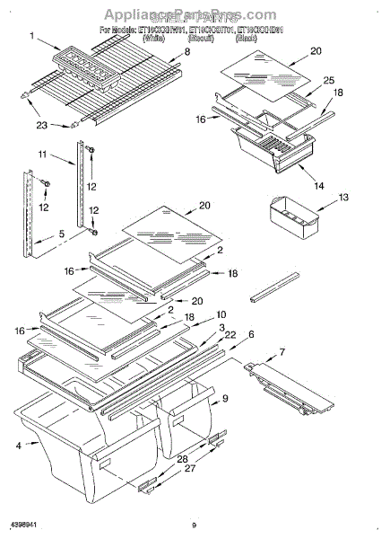 Repair manual for refrigerators and freezers made by Whirlpool. Covered brands include Whirlpool, Sears, Kenmore, Kitchen Aid, Roper, and Estate. Easy to follow photographs and step-by-step repair procedures.