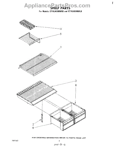Parts for Whirlpool ET18JKXMWR0: 05 - Shelf Parts