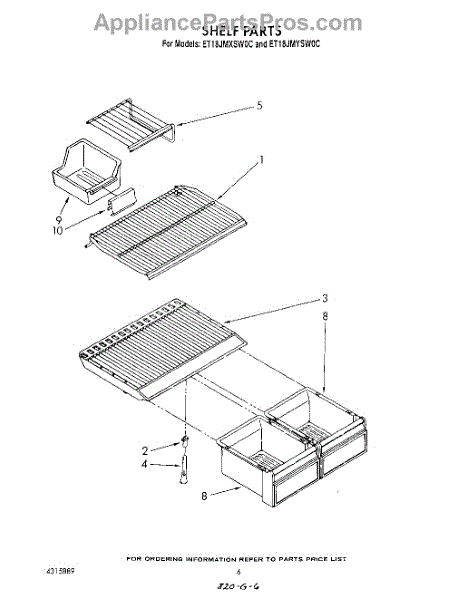 Parts for Whirlpool ET18JMYSG0C: 05 - Shelf Parts