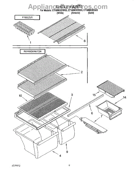 Repair manual for refrigerators and freezers made by Whirlpool. Covered brands include Whirlpool, Sears, Kenmore, Kitchen Aid, Roper, and Estate. Easy to follow photographs and step-by-step repair procedures.