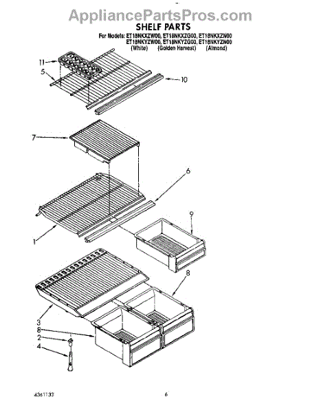 Parts for Whirlpool ET18NKXZN00: 05 - Shelf Parts
