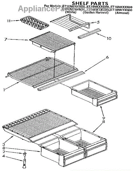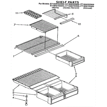 Parts for Whirlpool ET18NKYXG00: Shelf Parts