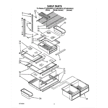 Parts for Whirlpool ET18PKXWG10: 04 - Shelf Parts