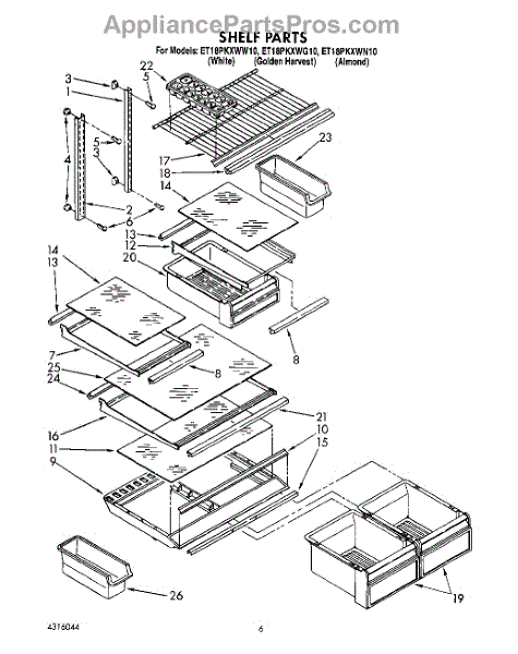 Parts for Whirlpool ET18PKXWN10: 04 - Shelf Parts