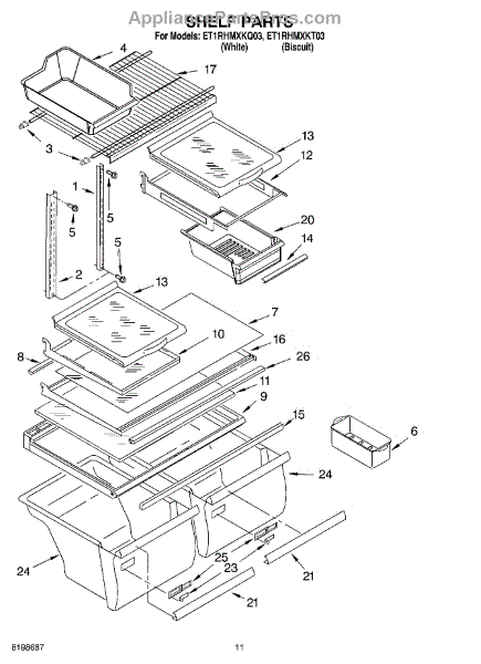 The Ice Pan is an OEM part for Whirlpool refrigerators. It is used to collect and store ice produced by the icemaker, ensuring a dedicated space for easy access and storage of ice. It measures approximately 11" W x 8" H x 20" D.