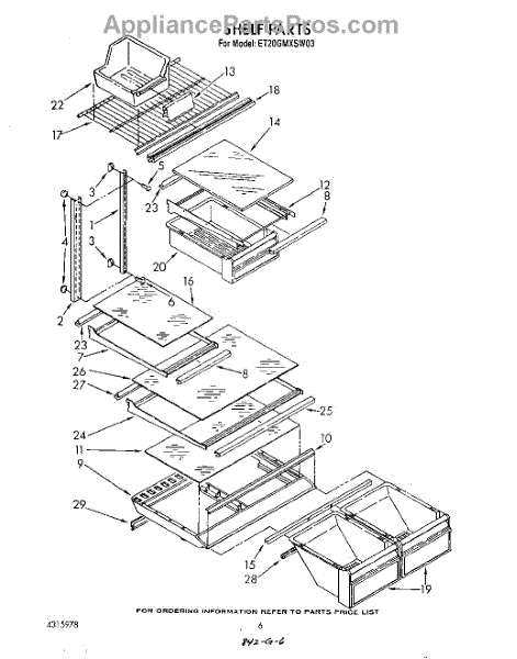 Parts for Whirlpool ET20GMXSW03: 05 - Shelf Parts
