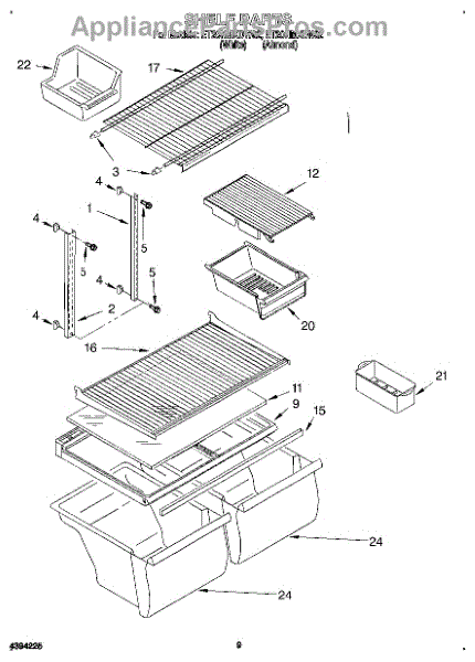 Causes relate to impact damage from overloading or appliance shifting. Normal wear from continuous use may also weaken shelf material integrity over 15+ years.