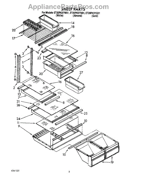 Parts for Whirlpool ET20PKXYG01: 04 - Shelf Parts