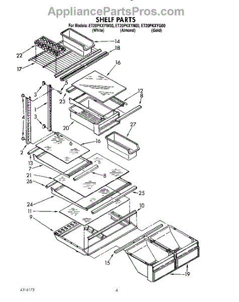 Parts for Whirlpool ET20PKXYW00: 05 - Shelf Parts