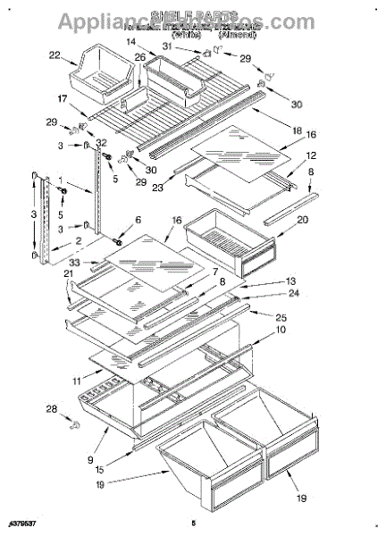 Parts for Whirlpool ET22PMXAW00: 04 - Shelf Parts