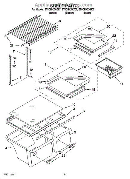 This genuine shelf assembly replaces a damaged or cracked refrigerator cabinet shelf to restore stable storage and keep items organized. It fits original mounting points for a secure, flush installation. What it does: