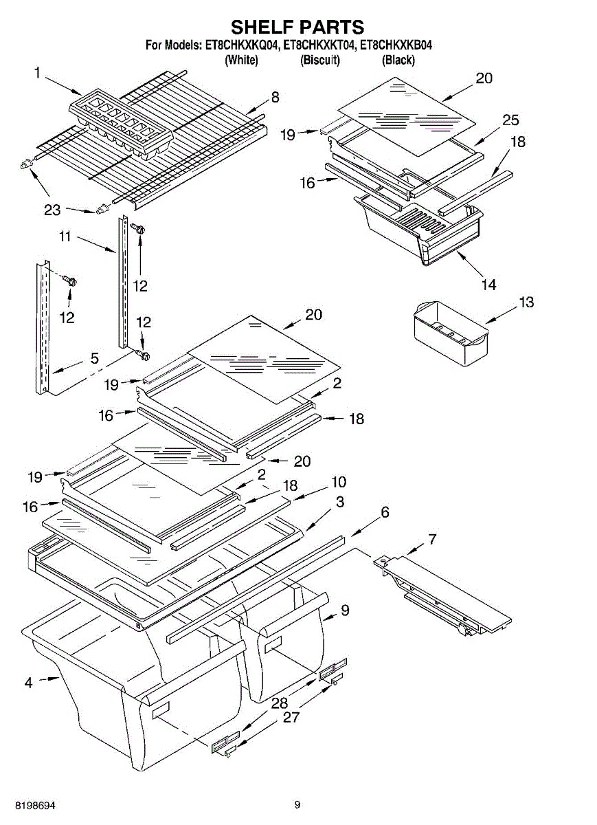 Replace a cracked, broken, or missing refrigerator cabinet shelf. This assembly restores stable storage space and fits securely into original mounting points.