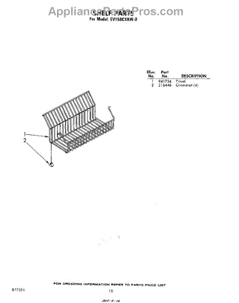 Parts for Whirlpool EV150CXKW0: 10 - Shelf Parts