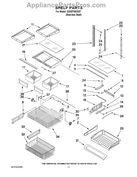 Note: For the left-hand side Pantry Drawer Support, order part number WP12656105.