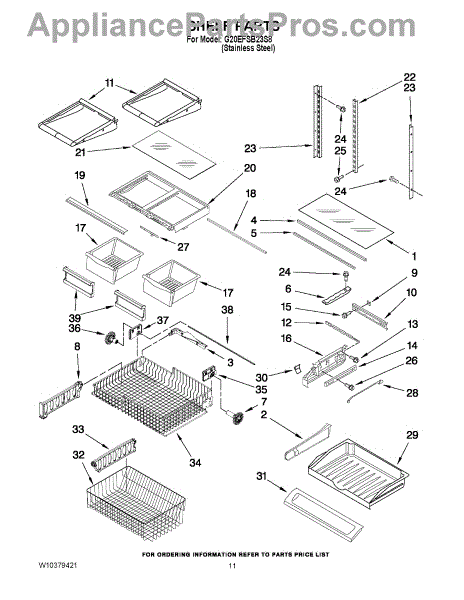 Note: For the left-hand side Pantry Drawer Support, order part number WP12656105.