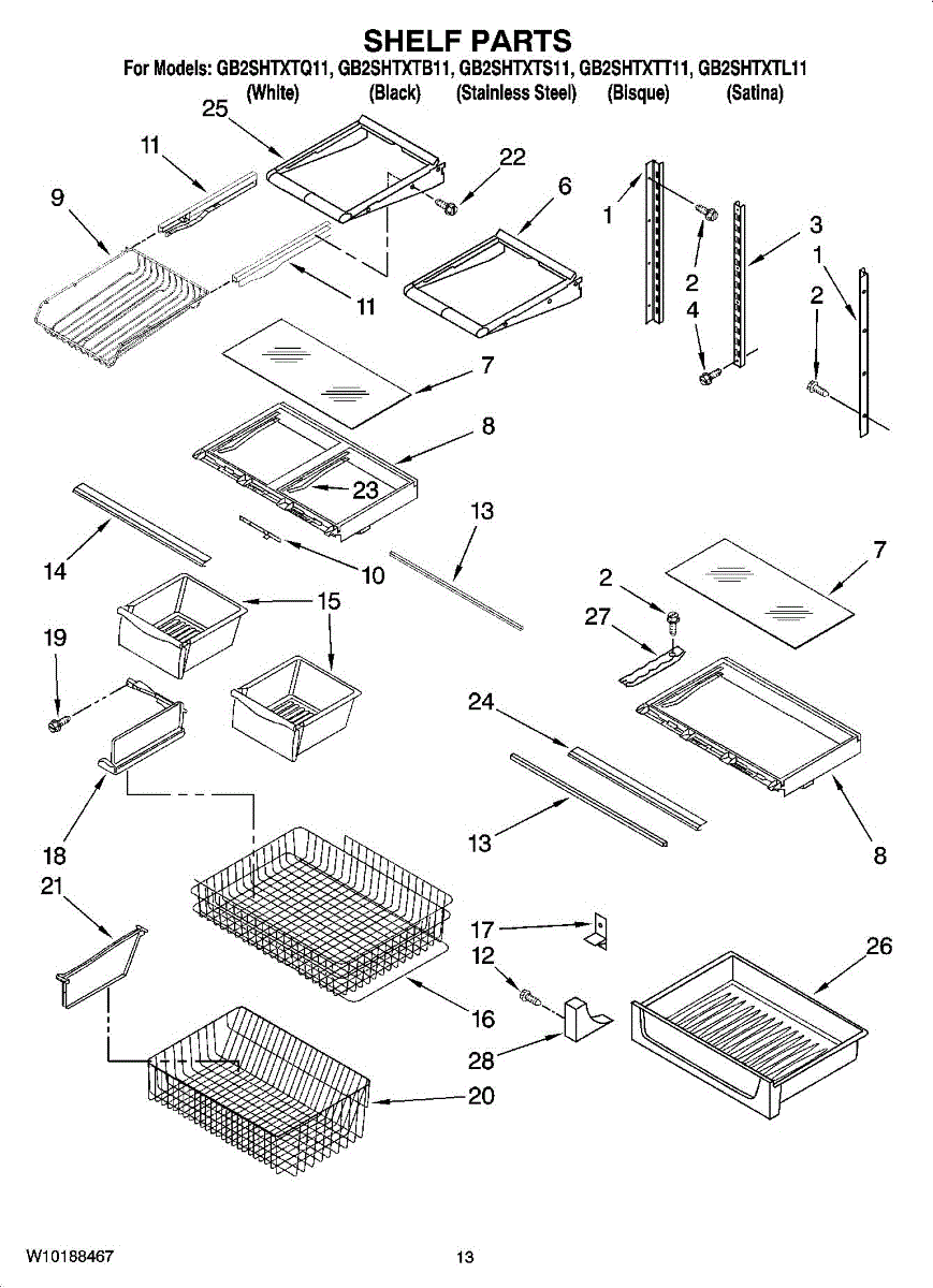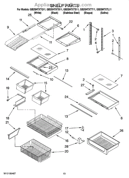 The Crisper Shelf Frame is an OEM part for Whirlpool side-by-side refrigerators. It provides sturdy tracked support for organizing vegetables and other produce items in the crisper drawers. The glass and center support are NOT included and must be ordered separately.