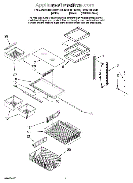 Note: For the right side drawer glide, use part number WP67001053