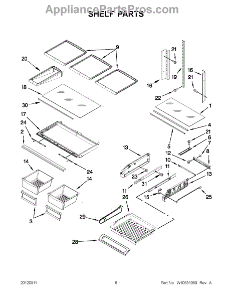 Note: For the left-hand side Pantry Drawer Support, order part number WP12656105.