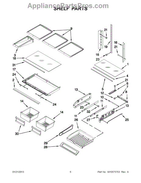Note: For the left-hand side Pantry Drawer Support, order part number WP12656105.