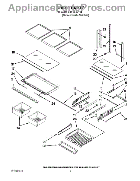 Note: For the left-hand side Pantry Drawer Support, order part number WP12656105.