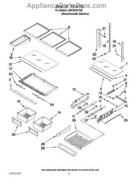 Note: For the left-hand side Pantry Drawer Support, order part number WP12656105.