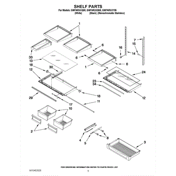 The Shelf Frame is an OEM part for Whirlpool refrigerators. It supports the glass or wire shelves, providing a stable platform for storing food and beverages inside the refrigerator. The shelf frame measures approximately 32 by 19 inches.