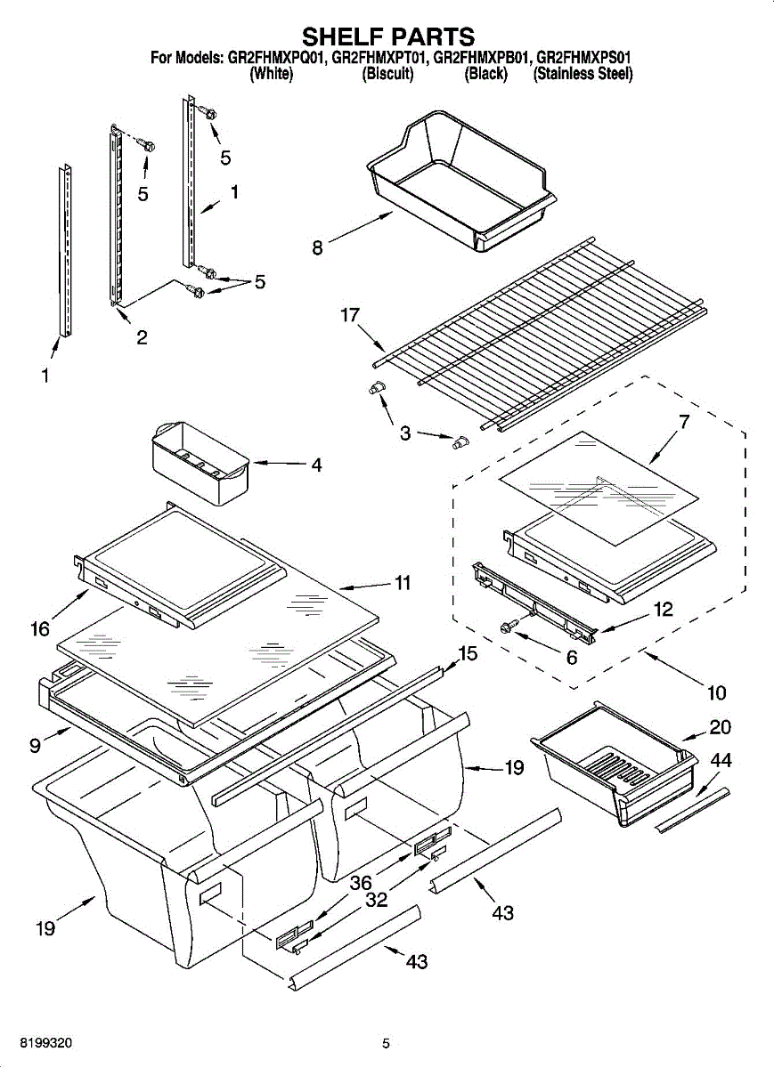 Plastic frame that supports the glass shelf above crisper drawers. Replace if cracked, broken, or warped. Holds drawers below and provides shelf space above.